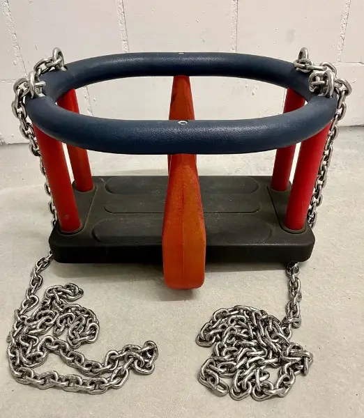 Kleinkinderschaukelsitz mit Aufprallschutz. Der Schaukelsitz ist bequem und ausserordentlich formstabil. Dank der Robustheit kann er an jede Schaukel montiert werden. Der Ring verhindert das Runterfallen der Kleinen. Sind die Kinder grösser, kann der Ring entfernt werden und Sie haben eine normale Sicherheitsschaukel zum Sitzen oder drauf Stehen. Dieser Sitz ist bei allen Kindern sehr beliebt.