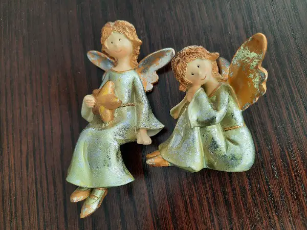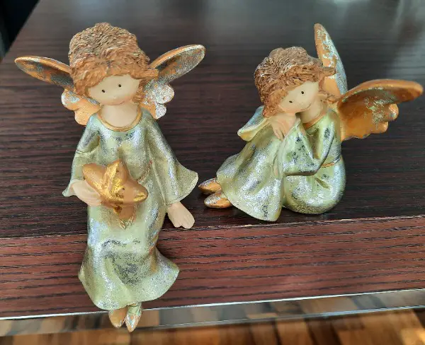 2 Engel; Weihnachts-Deco aus Gips für Tisch, 12cm, neu