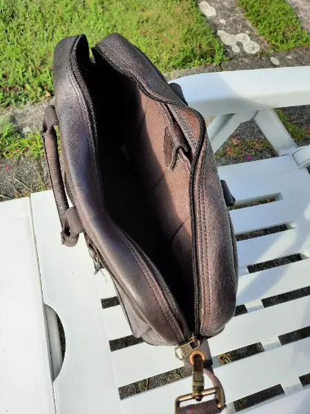 Infolge Nichtgebrauch neue schöne Echtledertasche Farbe mittelbraun mit Tragriemen. Die Tasche hat diverse Fächer mit Reissverschlüsse und div. Innentaschen.