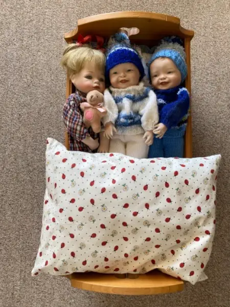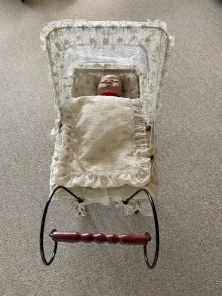 Puppenwagen und der Holzwiege.