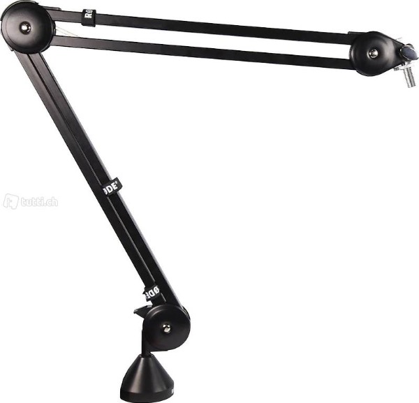 Radio-, Fernseh-, Studio- und Heimgebrauch. Der PSA1 bietet einen horizontalen Bereich von 820mm und einen vertikalen Bereich von 840mm sowie einen Schwenkbereich von 360°. Er wird mit Klettbändern für die Kabelbefestigung sowie einer Schreibtischklemme (für eine maximale Stärke von 55mm) und einer Halterung für eine in den
