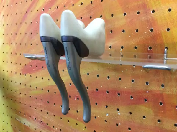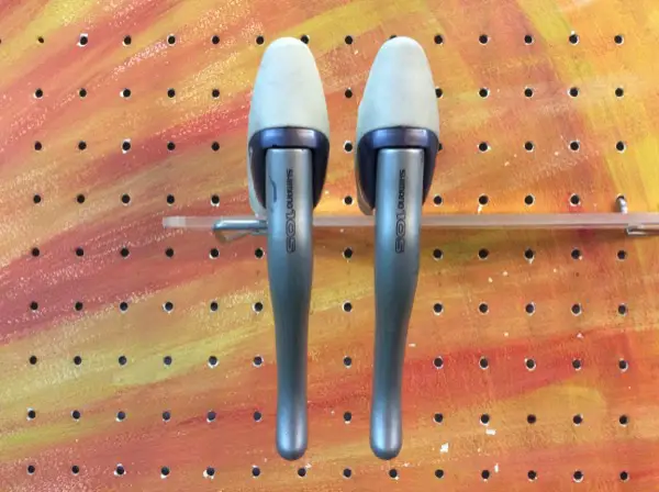 Auch NEUE / NOS Aero-Bremshebel SHIMANO 105, VINTAGE, mit schwarzen Griffgummis erhältlich, Preis: Fr. 55.-.
