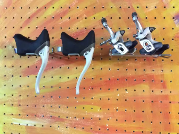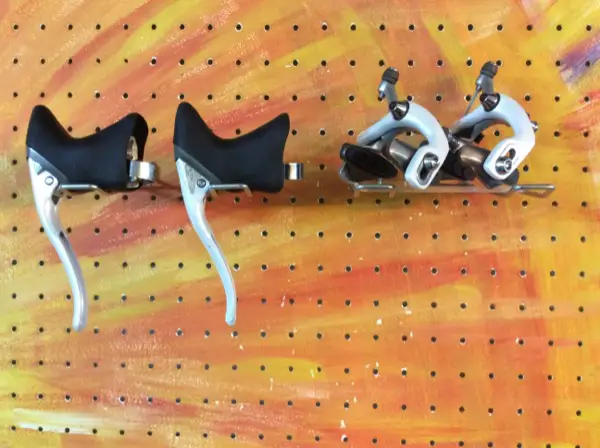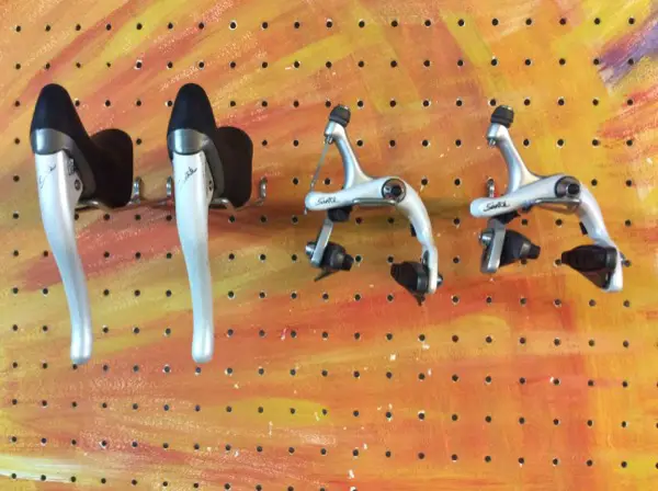 Sehr selten zu findende Shimano Santé-Rennvelobremshebel und Bremszangen, 1987-1988. Diese Shimano Santé Gruppe war zwischen Dura Ace und