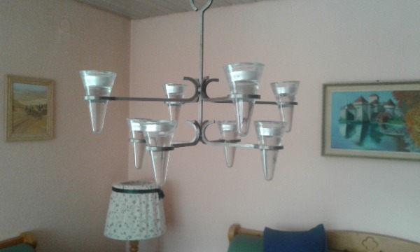 sehr spezieller Teelichthalter hängend, Hängeleuchter, Durchmesser: 42 cm, Höhe der