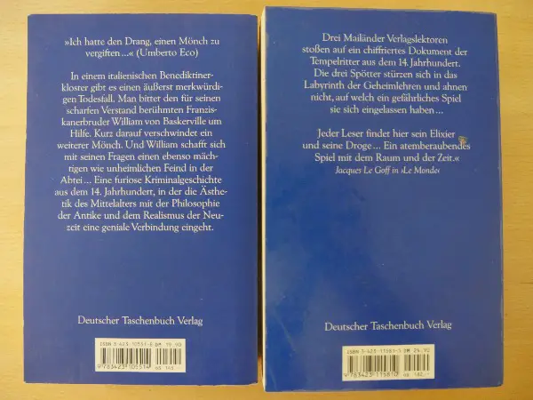 Taschenbücher. Die beiden Bücher weisen nur geringe Alters- und Abnutzungserscheinungen auf. "Das Foucaultsche Pendel" wurde von mir in Klebefolie eingepackt.