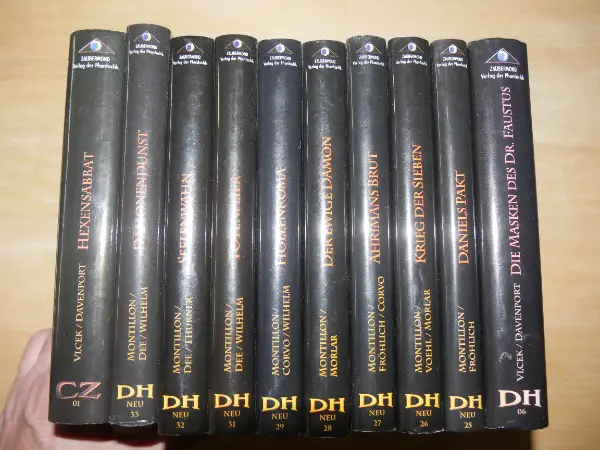 10 Hardcover-Bände aus der Dämonen-Killer-Reihe, in gutem bis sehr gutem Zustand. Der Cover-Umschlag von Band 27 ist etwas lädiert (an der Seite sowie auf der Rückseite mit abgerissener Ecke - das