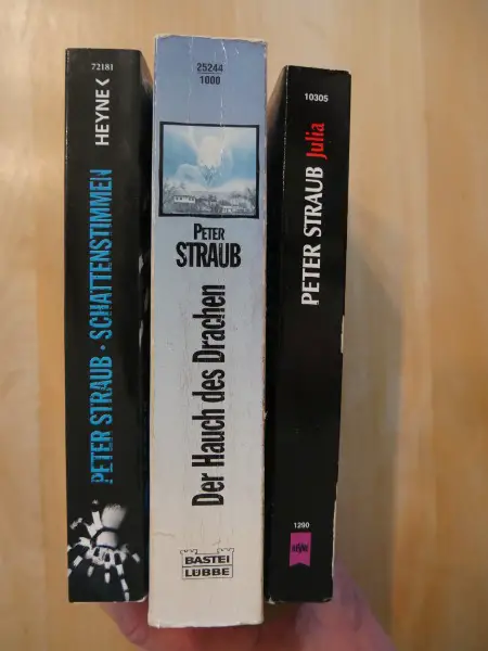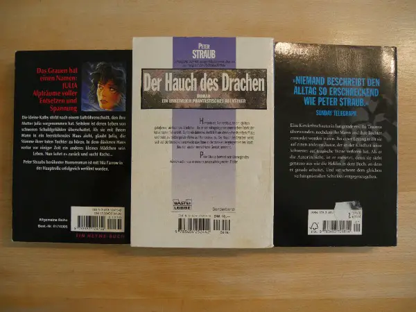 Taschenbücher. Die sind in gutem Zustand mit geringen Abnutzungserscheinungen, wobei "Der Hauch des Drachens" etwas stärker beansprucht ist. Bei den anderen beiden sind die Gebrauchsspuren minim.