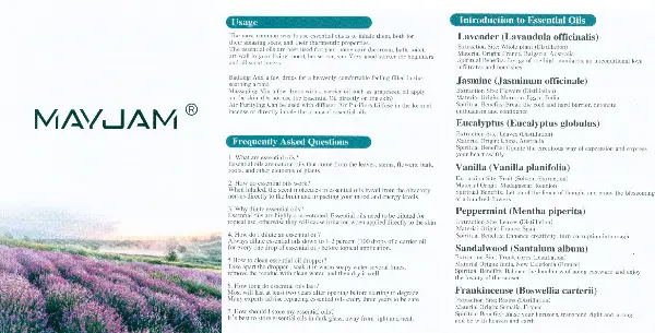 Ätherisches Öl aus 100% reinem Pflanzenextrakt. Keine Zusatzstoffe, keine Füllstoffe, nur reines ätherisches Öl. Jedes ätherische Öl wird in bernsteinbraunen 5-ml-Flaschen geliefert. Dies hält die Öle frisch und hilft gegen leichten Abbau.