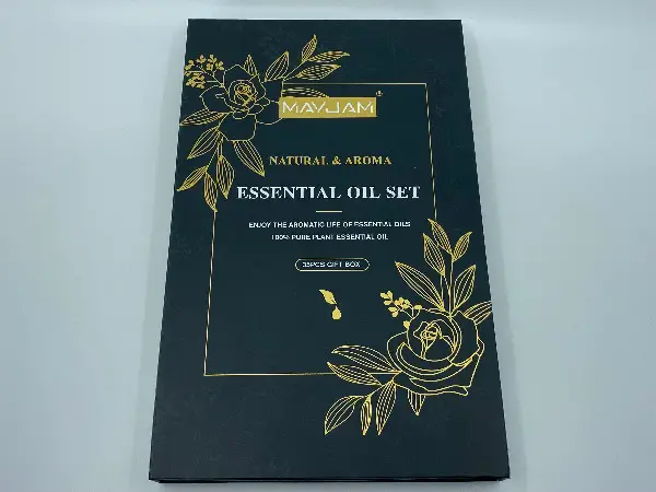 Die Geschnkbox enthält zu der Beschreibung der Düfte 4 Pitten und 35 Fläschchen mit jeweils 5 ml in folgender Duftrichtung: Basil, Bergamot, Cedarwood, Chamomile, Citronella, Clary Sage, Copaiba, Cypress, Eucalyptus, Frankincense, Geranium, Grapefruit, Helichrysum, Jasmine, Juniper Berry,