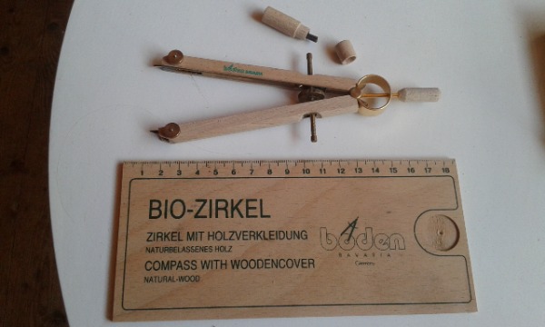 Zirkel aus Holz / Reisszeug in Holzschachtel / Bio-Zirkel
