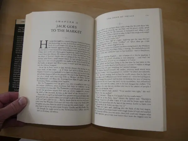 The dust jacket shows strong signs of wear and has a longer tear on the backside (4-5 cm) . The front bottom corner on the right is a bit damaged. Else, the book is in good to very good condition (clean copy on the inside, no torn or missing pages) .