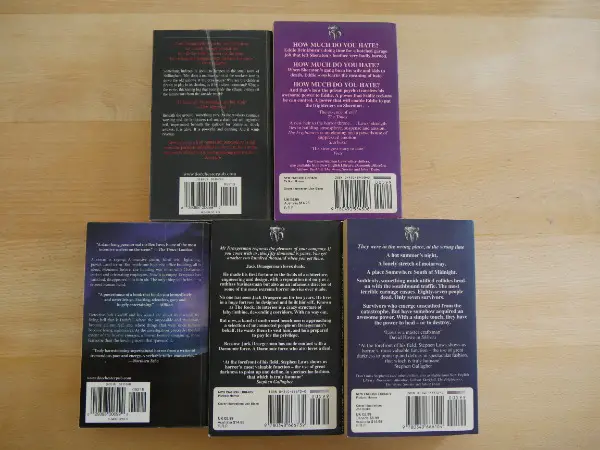 5 paperbacks, English language. The books are in good to very good condition and show only minor signs of use. 2 books have been bound in adhesive foil by me.