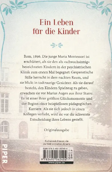 Ein mitreissender historischer Roman über eine aussergewöhnliche Frau, die ihr Leben dem Wohl der Kinder widmete und ein neues pädagogisches Konzept entwickelte.