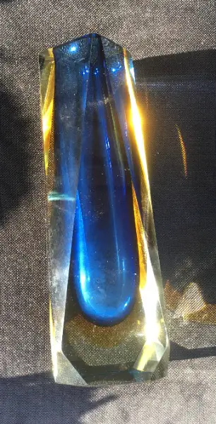 - Murano- Glas-Vase (ohne Garantie) . Wunderschöne Vase, in schönem Schliff und den Farben gelbgold-blau schimmernd.