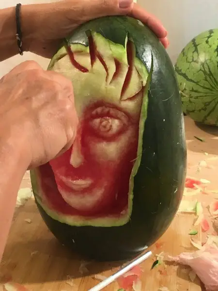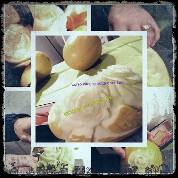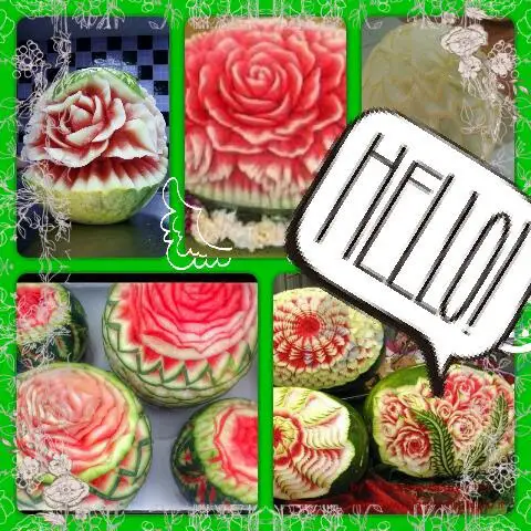 - intaglio bidimensionale su meloni angurie zucche - intaglio fiore - intaglio triangolari - intagli tondi - intagli simmetrici - la rosa nell'intaglio su anguria melone zucche (a seconda della stagione)