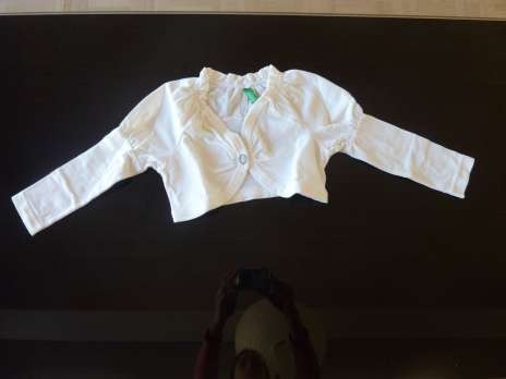Photo 3, Boléro blanc avec bouton "brillant" de la marque Benetton, taille 12-18 mois (peut être vendu séparément CHF 7) .