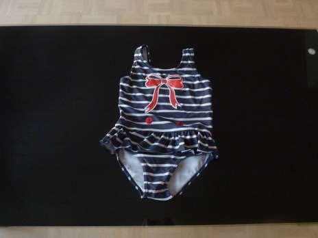 - Photo 3: Maillot de bain une pièce bleu marine avec rayures blanches. CHF 5.-
