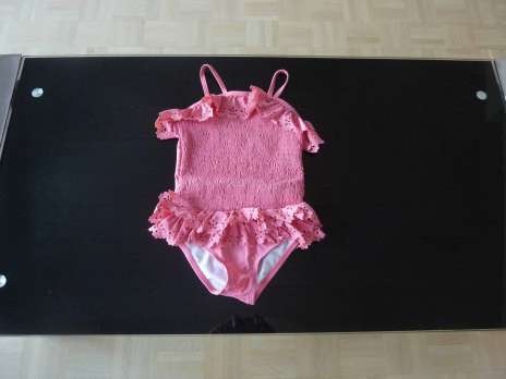 - Photo 3, maillot de bain rose avec frou-frou.