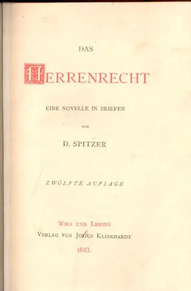 Spitzer, Das Herrenrecht. Eine Novelle in Briefen.