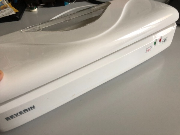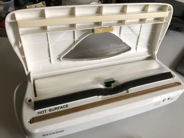 zum Trennschweissen. Sichtfenster für Folienvorrat. Inklusiv angefangene Rolle Folie (B)285 mm. Kabelaufwicklung, 160 Watt