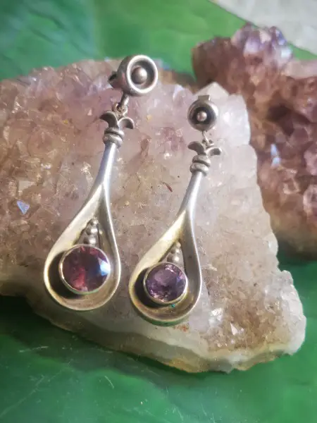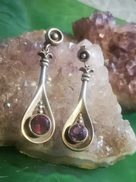 Ohrringe aus 970er Silber und mit 2 wunderschönen Amethysten bestückt!