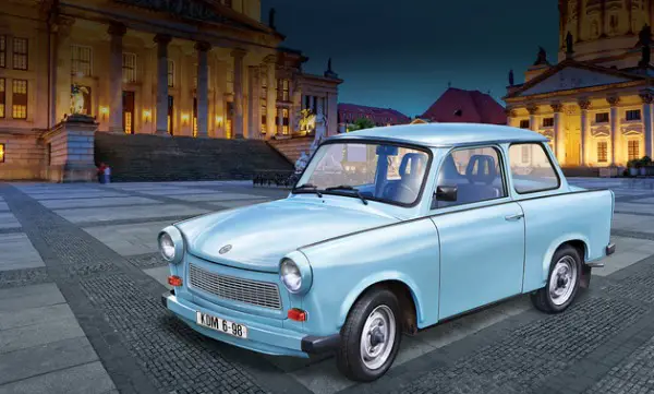 Das Set würdigt die 1957 erstmalig gefertigte Trabant-Baureihe, dessen 3. Generation als Trabant 601 ab 1964 vom Band lief. Angetrieben wurde der über 2,8 Millionen Mal produzierte 601 von einem Zweitakt-Motor.