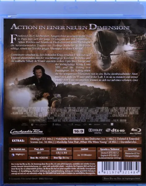 Frankreich, 17. Jahrhundert. Der junge und draufgängerische DArtagnan (Logan Lerman) legt sich gleich an seinem ersten Tag in Paris mit den unzertrennlichen Musketieren Athos, Porthos und Aramis (Matthew Macfadyen, Ray Stevenson und Luke Evans) an. Beeindruckt von dessen Tapferkeit im Kampf gegen die Truppen von Fiesling Rochefort (Mads Mikkelsen) , unterstützen die drei Helden DArtagnan bei seinem furiosen Feldzug gegen den machthungrigen Kardinal Richelieu (Christoph Waltz) und dessen teuflische Mlady de Winter (Milla Jovovich) . Mit Charme, Witz und Unerschrockenheit retten sich die Vier aus den brenzligsten Situationen, doch ob der drohende Krieg abgewendet werden kann, wird sich erst im finalen Showdown zeigen