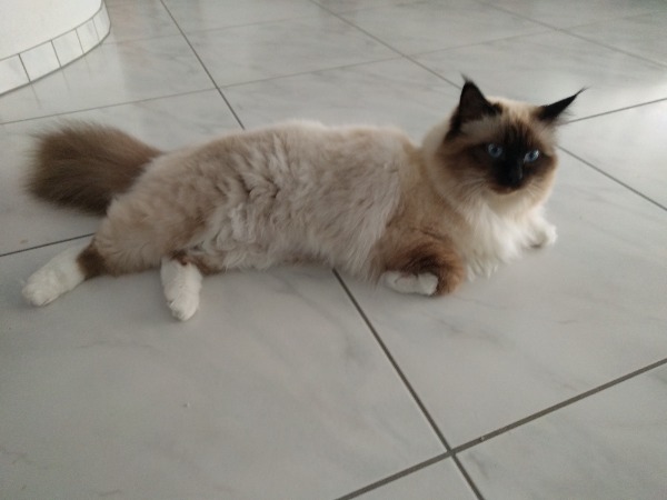 Birma Deckkater sealcolourpoint mit den typischen weissen Pfoten, (Handschuhen) und den bestechlich blauen Augen, der gerne Damenbesuch empfangen würde, sofern Ihre