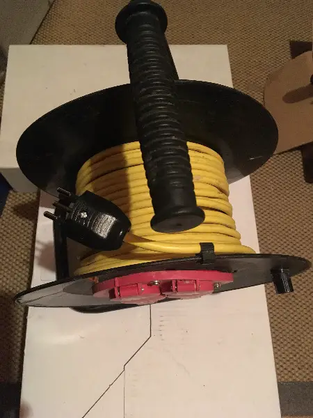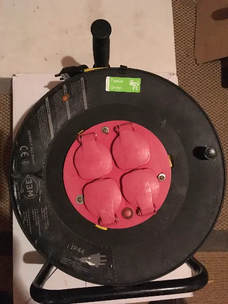 Kabelrolle Verlängerungsknabberl (Vergänkerungslabel) , gebraucht, mit 4 Buchsen, mehrere da, auch eine Kabelrolle mit 33 m gelbem Kabel (Fotobild 6) zu Fr. 18.-. Wegen vorig.