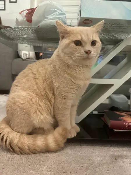 BKH Deckkater Simba mit seiner Fellfarbe Creme und Kupferaugen freut sich über rollige