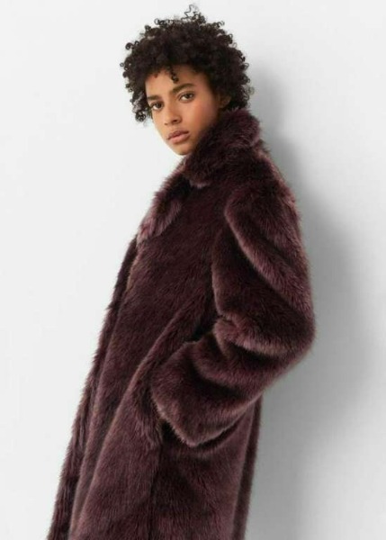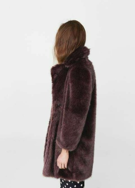 Kunstpelz. Breites Revers. Lange Ärmel. Seitentaschen. Knopfverschluss. Futter.