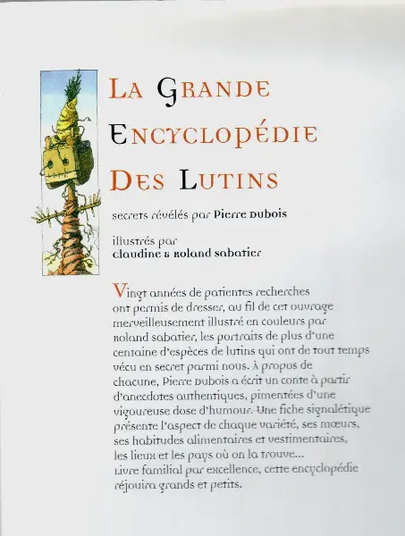 Descriptions: Vingt années de patientes recherches ont permis de dresser, ou fil de cet ouvrage merveilleusement illustré par Roland Sabatier, les portraits de plus d'une centaine d'espèces de lutins qui ont de tout temps vécu en secret parmi nous.