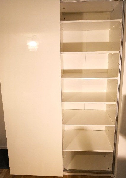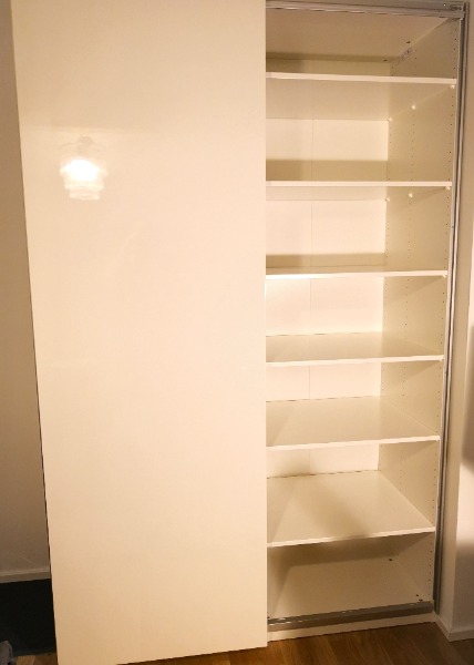 Gebraucht, sehr guter Zustand siehe Bilder. Mit 2 HASVIK Schiebetüren in Hochglanz weiss.