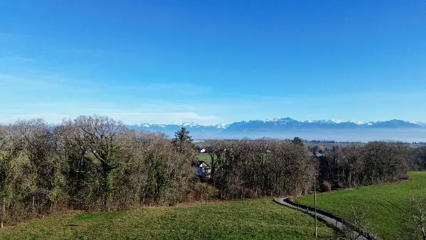 Charmante propriété individuelle à vendre, d'une surface nette habitable de 264 m2, en grande partie rénovée en 2014 et 2022, avec superbe vue sur les Alpes et la campagne environnante!