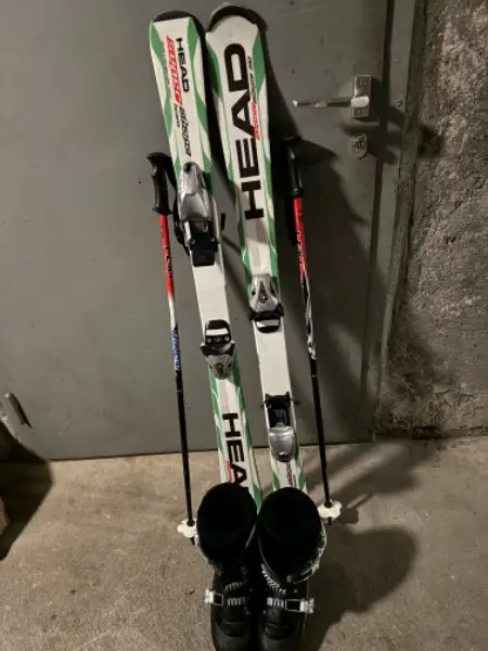 Skiausrüstung, die für Kinder im Alter von 8 bis 11 Jahren geeignet ist. Mein Sohn hat es nur einmal benutzt, und der Preis beträgt 50 Schweizer Franken. Es besteht auch die Möglichkeit, die Teile separat zu erwerben.
