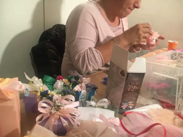 - lavorazione confezionamento floreale su bomboniera