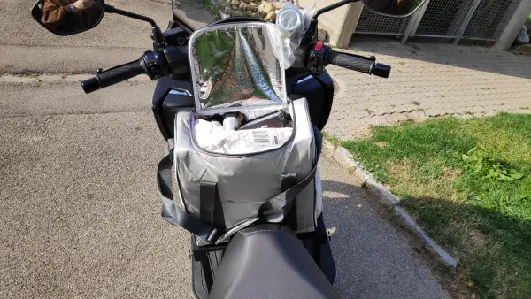 Zum tanken mit Einkaufstasche darauf geht so: Seitenständer raus, Einkaufstasche im Sitzen abheben und links auf den Boden stellen, absitzen, mit beiden Händen die Tunnel-Brücke hochheben und beiseite stellen. Tanken und danach alles wieder in umgekehrter Reihenfolge montieren. Der Lenkereinschlag wird auf keine Weise eingeschränkt. Für gelegentliches Einkaufen macht es jetzt mit dem Burgi einfach nur Spass.