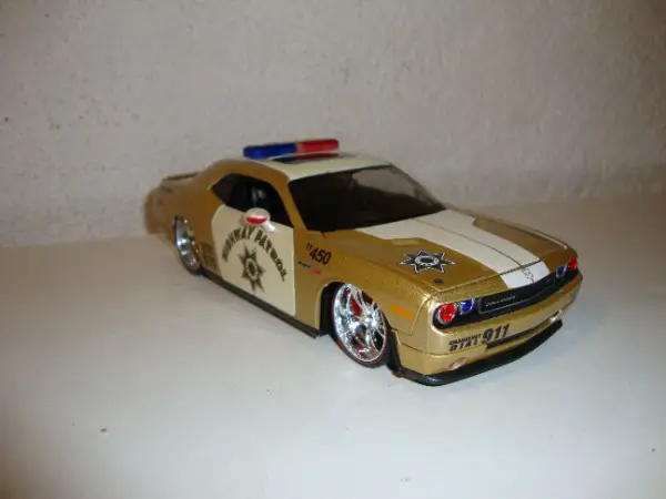 Verkaufe einen Dodge Challenger SRT 8 2008 Highway Patrol aus Metall im Masstab 1:24 Die Motorhaube, der Kofferraum und die Einstiegstüren können geöffnet werden. Dieser Dodge ist neuwertig ohne OVP Vorauszahlung zuzüglich 8.50.- Versand.