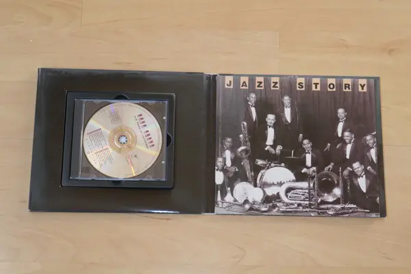 JAZZ STORY". Es ist ungebraucht. Im Werk integriert ist eine CD mit Musikbeispielen von bekannten Jazz-Grössen. Auf vielen Doppelseiten werden berühmte Musiker aus dieser Zeit portraitiert.