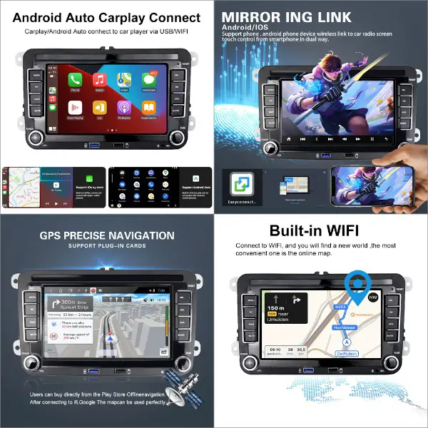Vw Autoradio Carplay 64 GB DAB+ Android 13 Tiguan Polo Golf