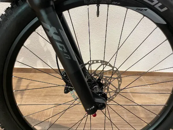Vorderrad: KTM Line - Shimano MT410B CL 32H 110-15TA / Ambrosio E30 Trail 32H 584x30TC / DT Champion 2.0 black