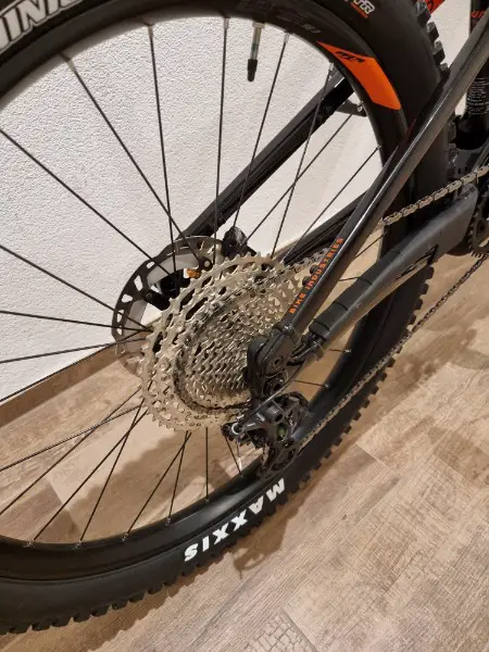 Hinterrad: KTM Line - DT Swiss 370 CL 28L 148/12 12SP LN18 / Ambrosio E35 Trail 28H 584x35TC / DT Alpine II 2.34 black