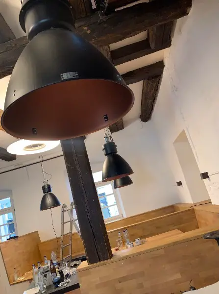 Industrielampe. Höhe 74 cm Durchmesser - 55 cm Gewicht - 10 kg Sie erhalten die Lampen im zerlegten Zustand für eine gründliche Verpackung.Preis für eine stück 350 ChF inkl .mit versand aus der Slowakei . Dort haben wir unsere Räumlichkeiten und láger mit Restaurierungswerkstätten.