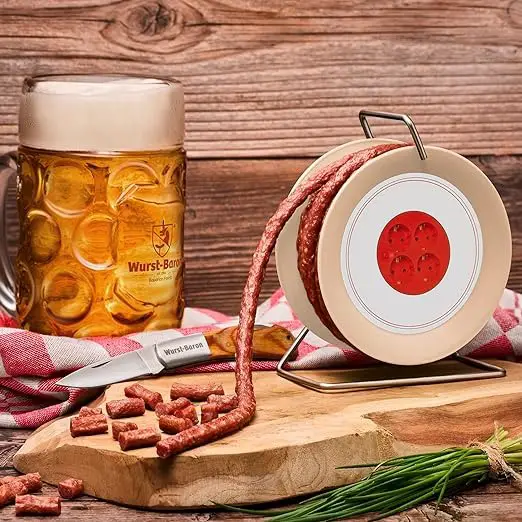 • Lieferumfang: 1 x 3,5 Meter Wurst nach Krakauer Art (ca. 240 Gramm) , inkl. Gestell mit einer Höhe von 15 cm und einem Durchmesser von 13 cm | Spezialitäten und Schmankerl Made in Germany seit 1968
