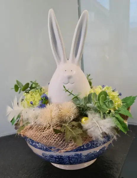 . Dekoriert mit Seidenblumen, Perlen, Federn uns anderem.