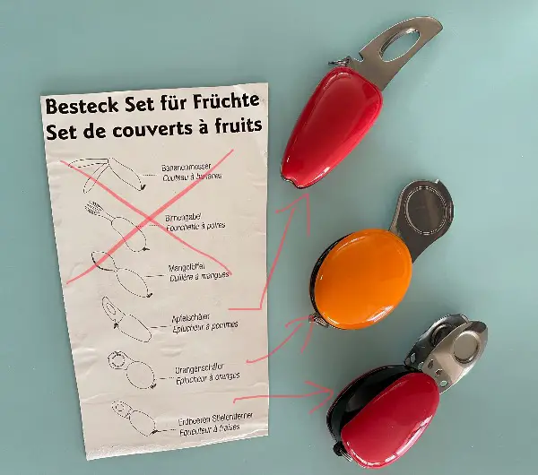 3x Besteck für Früchte Erdbeer Orange Apfel in Fruchtform