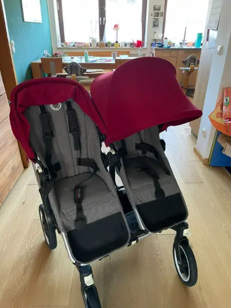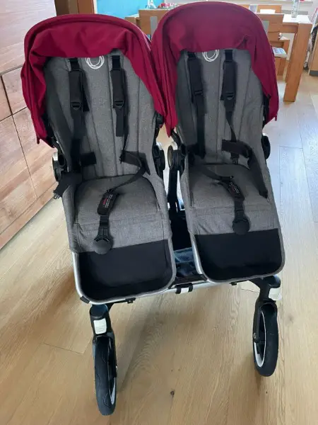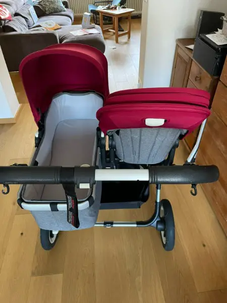 Der Bugaboo Donkey 2 ist perfekt für Zwillinge und kommt mit allem Zubehör. Ab Geburt bis knapp zum 4. Lebensjahr ist man damit wunderbar mobil.