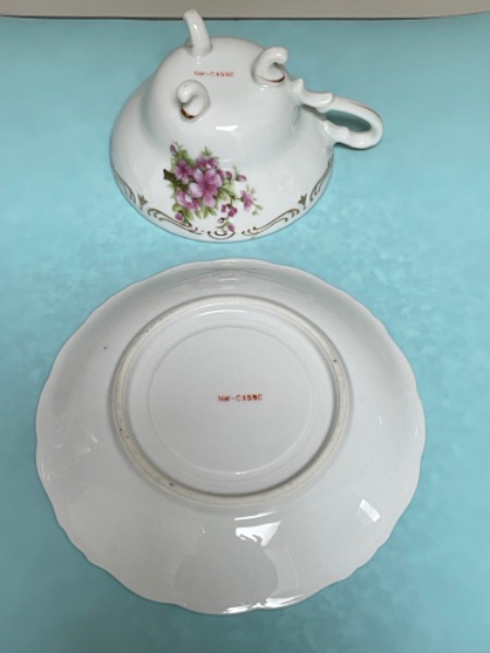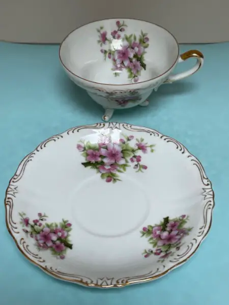 Norcrest Teetasse Unterteller Porzellan Blumenmotiv Füsschen