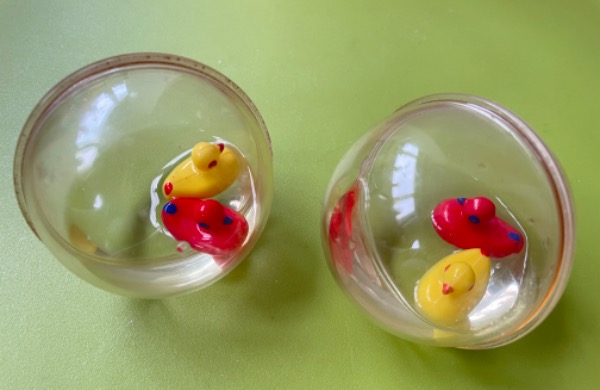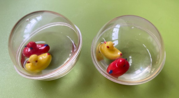 2x Enten Wasser Kugel Ball Rassel mit 2 Enten Entchen 70er