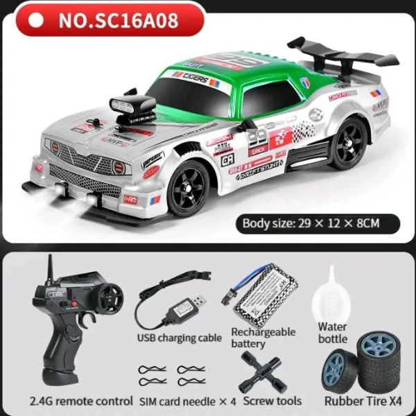 20km/h. Die solide Bauweise verspricht Langlebigkeit und Zuverlässigkeit, während der Allradantrieb für unübertroffene Traktion auf allen Untergründen sorgt. Ob für rasante Rennen oder spannende Drift-Abenteuer, dieses Fahrzeug bietet Spass und Spannung für alle Altersgruppen.